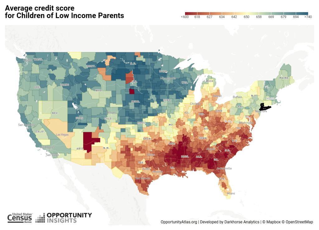 And that’s because lower average scores tend to limit access to affordable credit, housing, and even job opportunities. When credit scores are lower across a community, predatory lenders tend to take root—crowding out responsible lenders like weeds in a neglected garden. These high-cost lenders often trap people in cycles of debt instead of helping them build credit. When those barriers persist over generations, it becomes harder for whole communities to break the cycle of economic hardship.